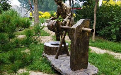 老頭蹦爆米花雕塑,老式爆米花雕塑