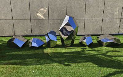 抽象不銹鋼切面石頭雕塑,創(chuàng)意幾何石頭雕塑