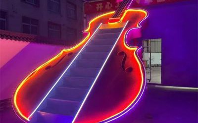 網紅打卡琴梯雕塑案例分享 發光不銹鋼大提琴雕塑